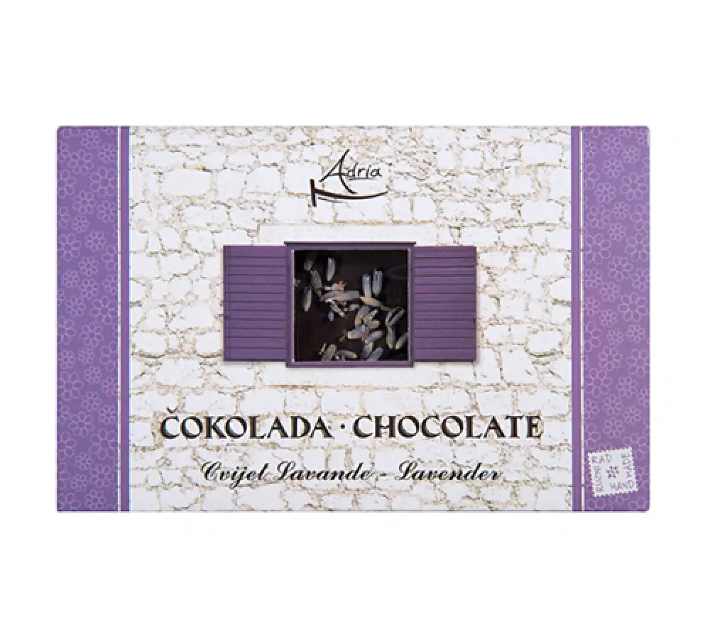 kakao masa, šećer, kakao maslac, cvijet lavande 2 %, emulgator: sojin lecitin; prirodna aroma vanilije