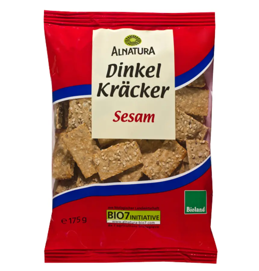 integralno brašno pira (60 %), sezam (38 %), umak od soje, tamari (voda, zrna soje, morska sol), rižino brašno, morska solProizvod sadrži soju i sezam. Može sadržavati tragove oraha, lješnjaka, badema, mlijeka, jaja i celera