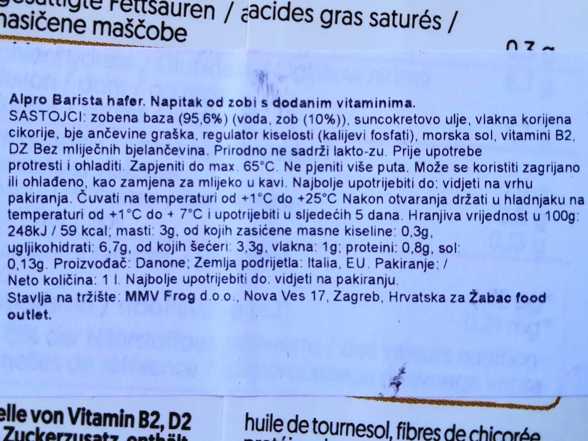 Mlijeko od zobi barista 1 L