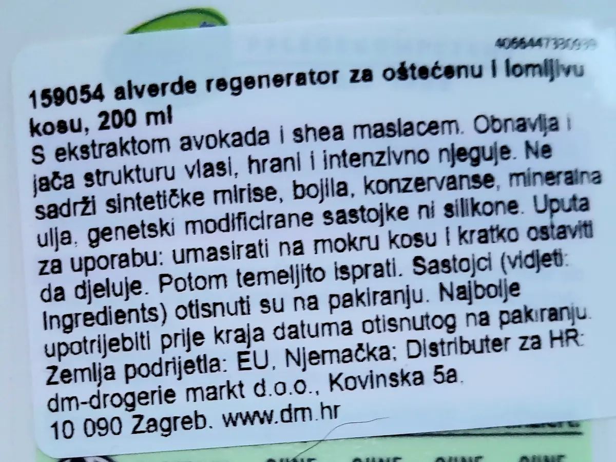 Ne sadrži sintetičke mirise, bojila, konzervanse, mineralna ulja, genetski modificirane sastojke ni silikone.