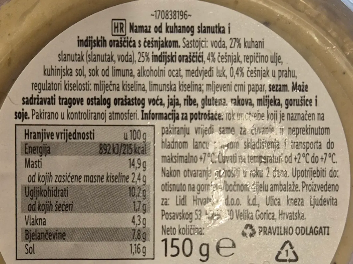 Namaz od indijskih oraščića s češnjakom 150 g