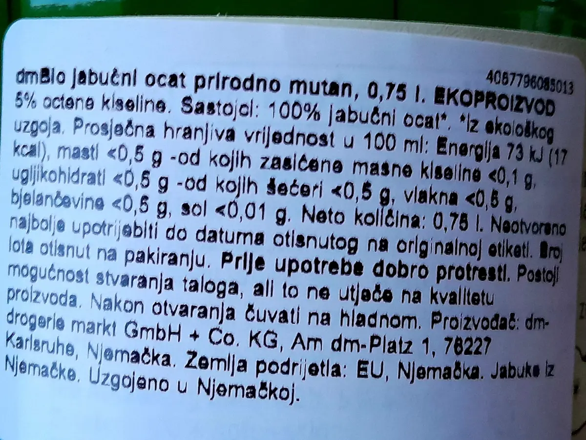 Jabučni ocat 0,75 L