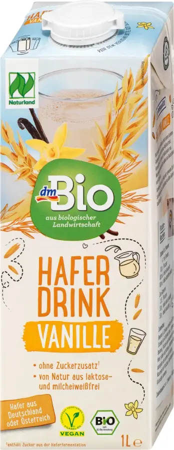 dmBio napitak od zobi s vanilijom idealna je zamjena za mlijeko. 100 je veganski proizvod od najboljih sastojaka iz ekološkog uzgoja. dmBio napitak od zobi s vanilijom ne sadrži dodani šećer, laktozu i mliječne proteine. Možete ga piti samostalno ili u kombinaciji s voćem ili sokovima, a idealan je i za müsli, griz ili u desertima.