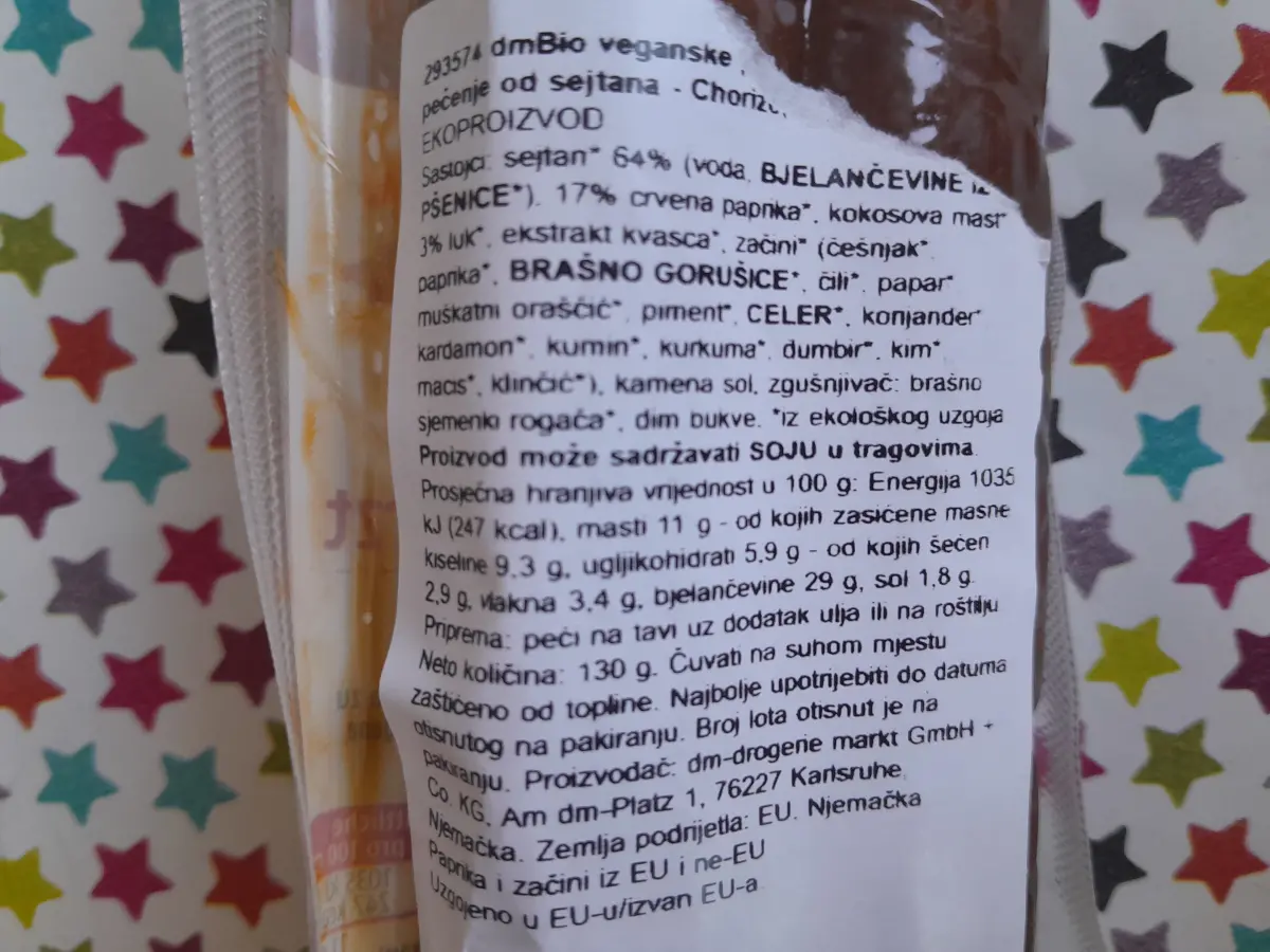 Pikantne kobasice za pečenje od sejtana Chorizo 130 g