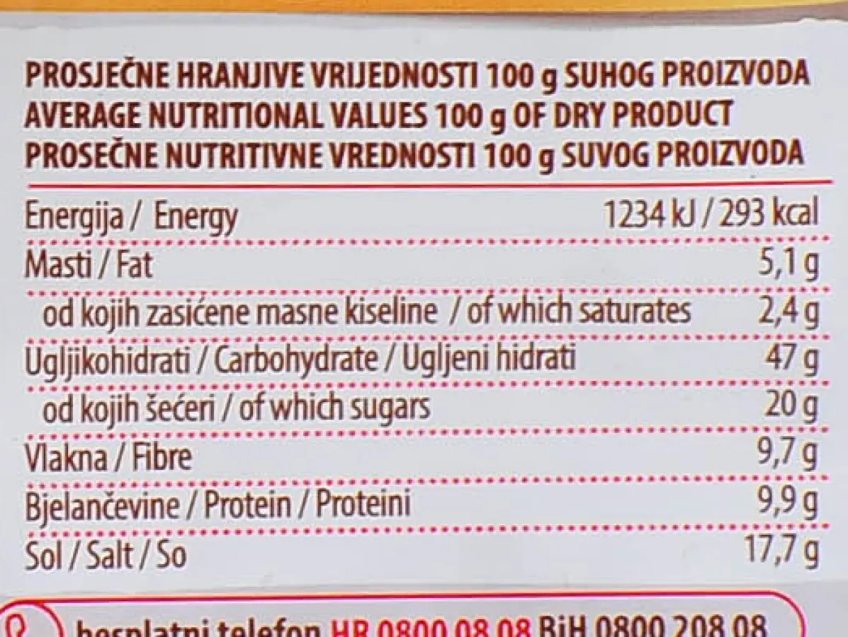 Proizvod sadrži gluten, a može sadržavati mlijeko i jaja u tragovima.