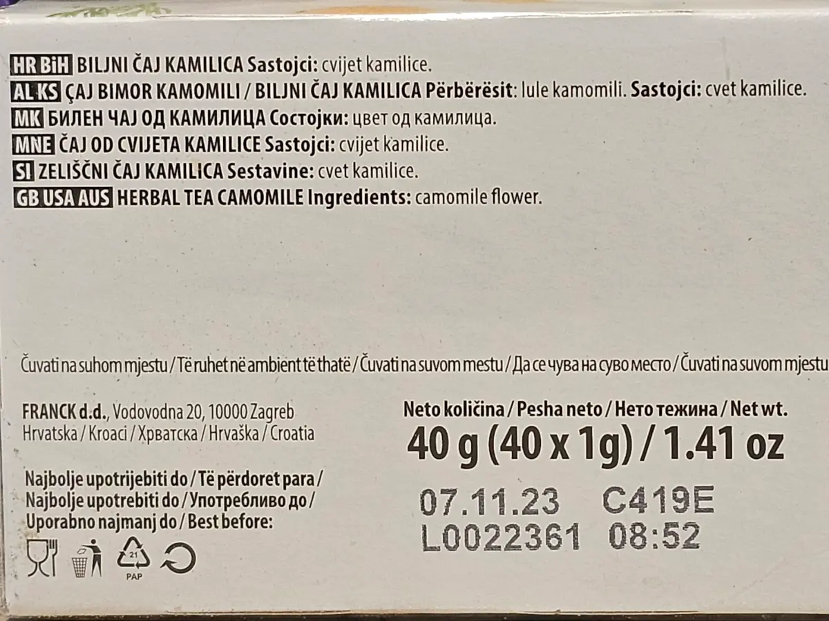 Čaj kamilica 40 x 1 g