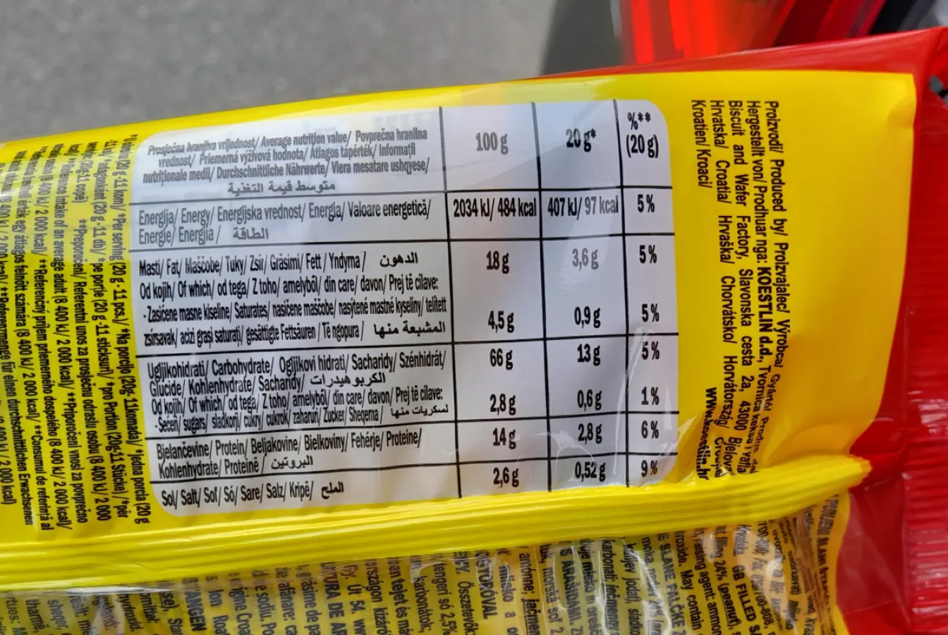 Energija: 2034 kJ / 484 kcal