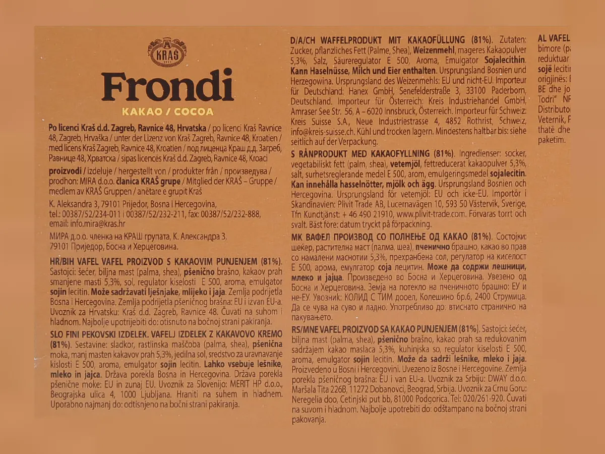 Vafel proizvod s kakaovim punjenjem (81 %).