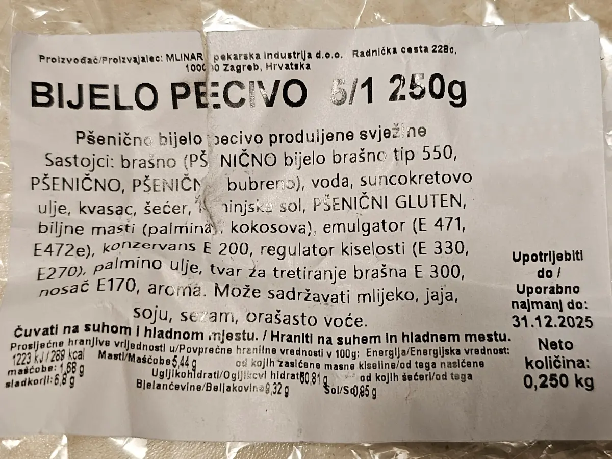 Bijelo pecivo 5 kom 250 g