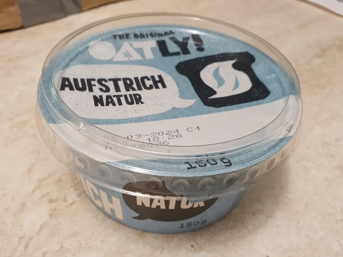 Voda, repičino ulje, hidrogenirana biljna ulja (kokos, repica), zob 9 %, krumpirov škrob, bjelančevine krumpira, jodirana sol (sol, kalijev jodid), stabilizator: pektin, kiselina: jabučna kiselina, mliječna kiselina.