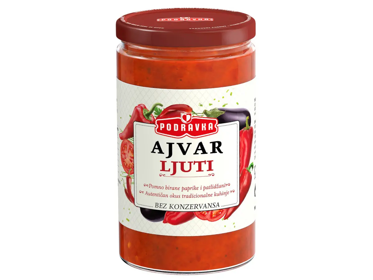 Paprika (76 %), plavi patliđan (12 %), suncokretovo ulje, alkoholni ocat, koncentrat rajčica (2,6 %), kuhinjska sol, ljuti feferon (1 %), šećer, začini.