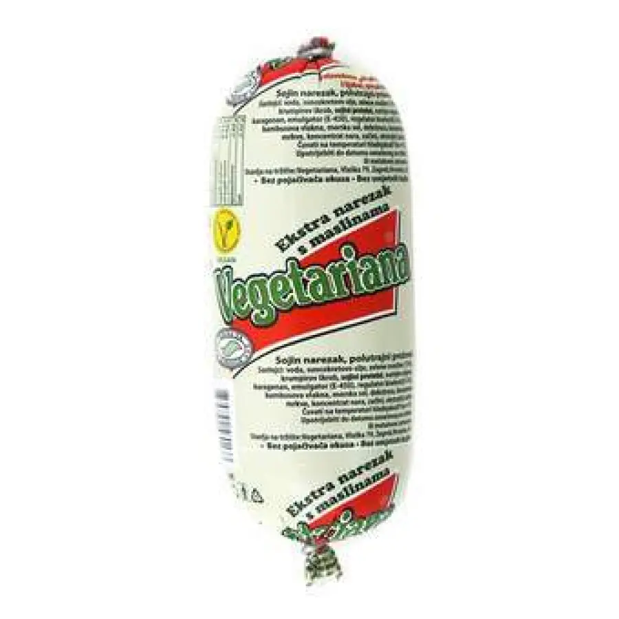 Voda, suncokretovo ulje, zelene masline (15 %), krumpirov škrob, SOJINI PROTEINI, natrijev alginat, karagenan, emulgator E450, regulator kiselosti E516, bambusova vlakna, morska sol, dekstroza, koncentrat mrkve, koncentrat nara, začini, ekstrakti začina