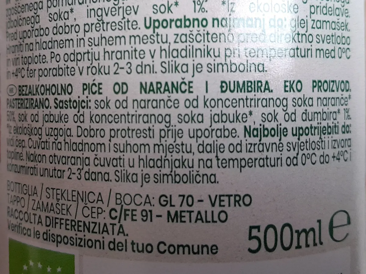 Sok od naranče, jabuke i đumbira 500 ml