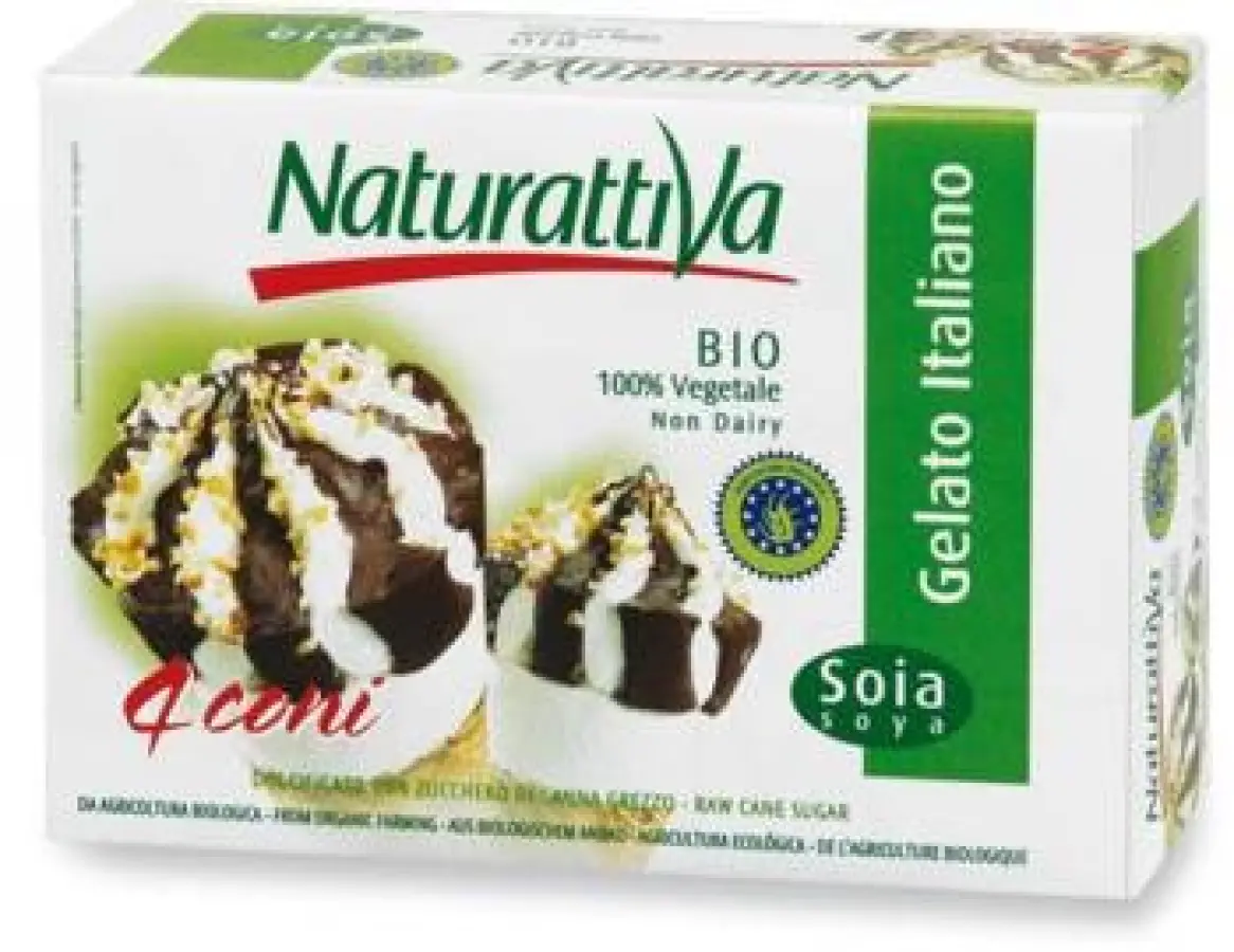 sladoled 85 %: ekstrakt soje 55 %, kokosovo ulje, smeđi šećer 12 %, glukozni sirup, lješnjaci tostirani 4,5 %, kakao u prahu, brašno sjemenki rogača, emulgator:sojin lecitin.kornet 15 %: pšenično brašno tip0, smeđi šećer, palmino ulje, sojin lecitin, sol, soda bikarbona