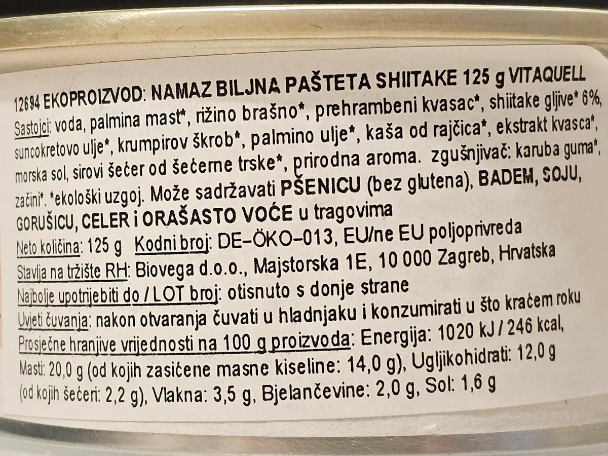 Biljna pašteta shiitake 125 g