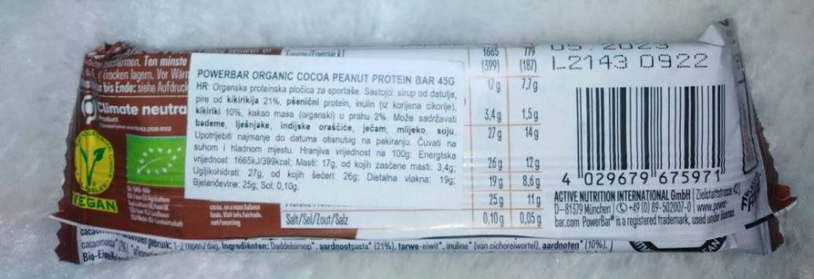 Organska proteinska pločica za sportaše