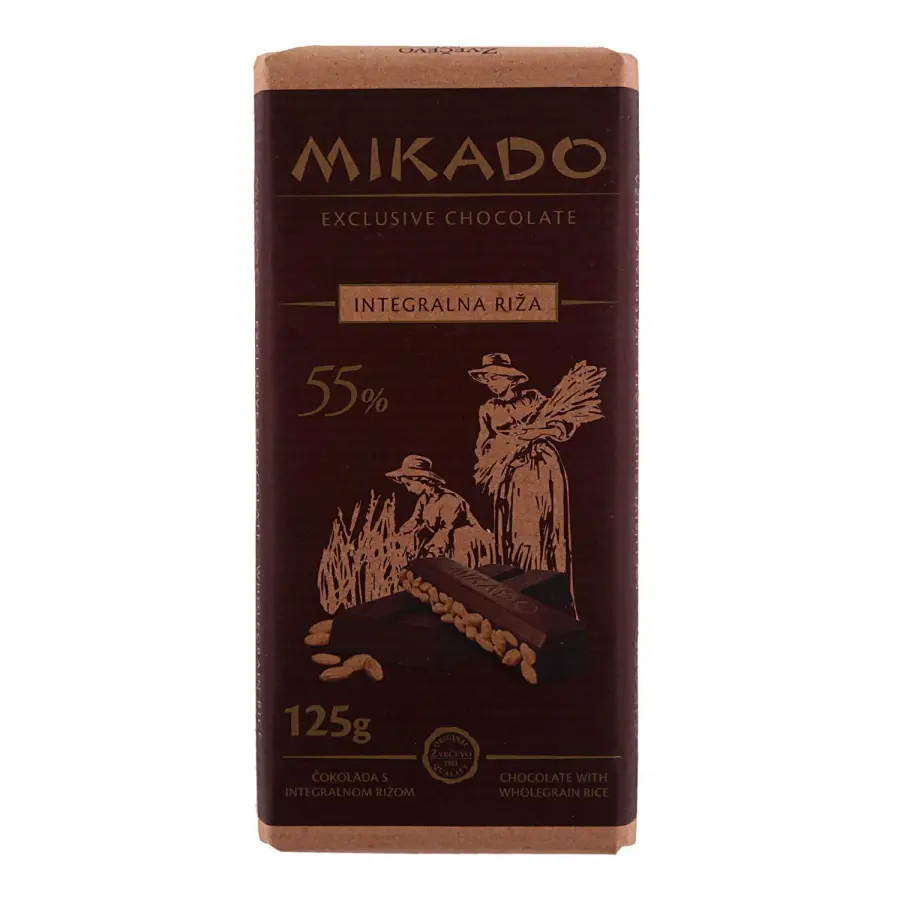 Šećer, kakaova masa, integralna ekspandirana riža 10 %, kakaov maslac, emulgatori (soja lecitin i E476), prirodna aroma vanilijeProizvod sadrži soju, a može sadržavati mlijeko, lješnjak, badem i gluten