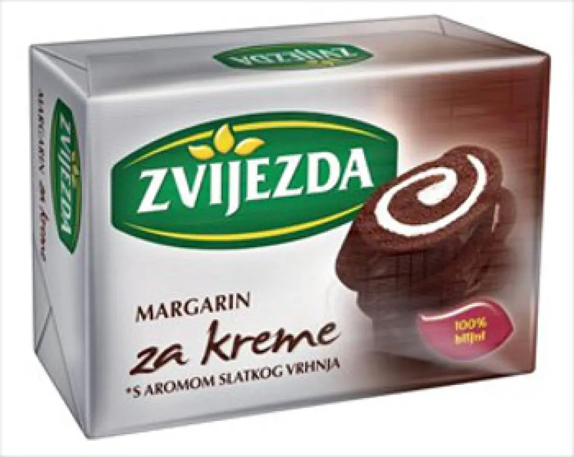 biljna ulja i biljne masti 80 %, voda, kuhinjska sol 0,4 %, emulgator (soja lecitin, E471), aroma slatkog vrhnja 0,05 %, konzervans (sorbinska kiselina), regulator kiselosti (limunska kiselina), bojilo (beta karoten)